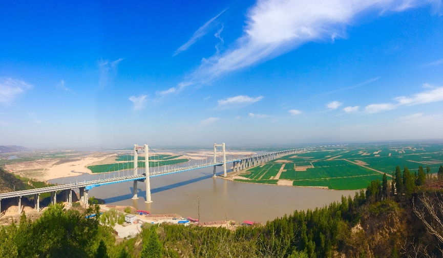 濟齊黃河公路大橋位于濟南市槐蔭區(qū)與德州市齊河縣交界處,是山東省委省政府“一圈一帶”發(fā)展戰(zhàn)略的重要基礎設施工程。大橋全長3767.9米,主橋采用塔墩固結(jié)、塔梁分離半漂浮體系,全長840米,主跨為單跨跨徑410米雙塔雙索面鋼-混組合梁斜拉橋,是黃河流域單跨最大的斜拉橋。該橋進一步拉近濟南與齊河之間的距離,大大加快德州融入省會經(jīng)濟圈的腳步。